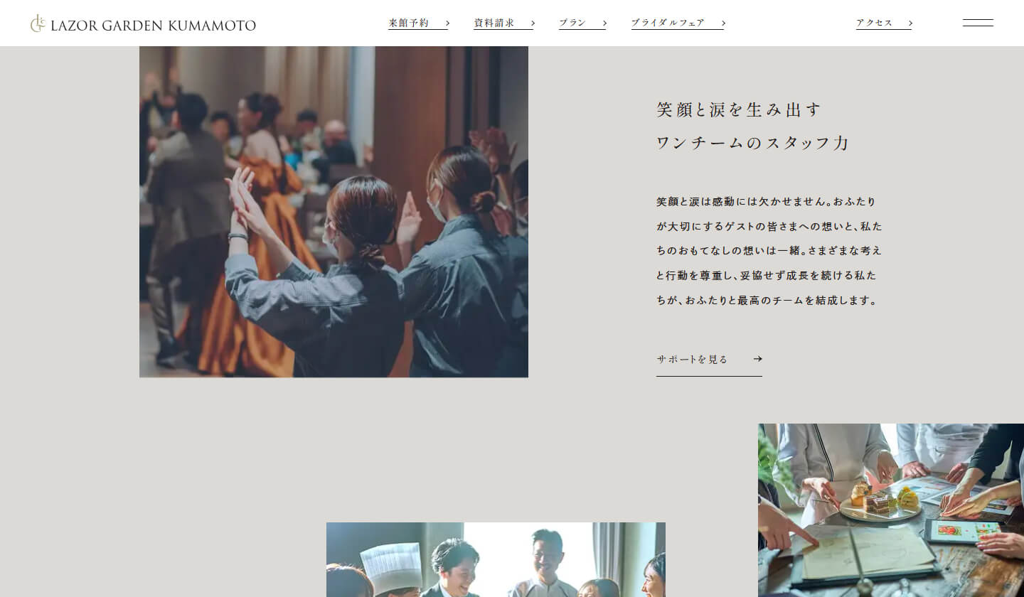 株式会社ブライダルハウスチュチュ様が運営する、熊本のブライダル会場「ラソールガーデン熊本」のWEBサイトリニューアルを担当。
